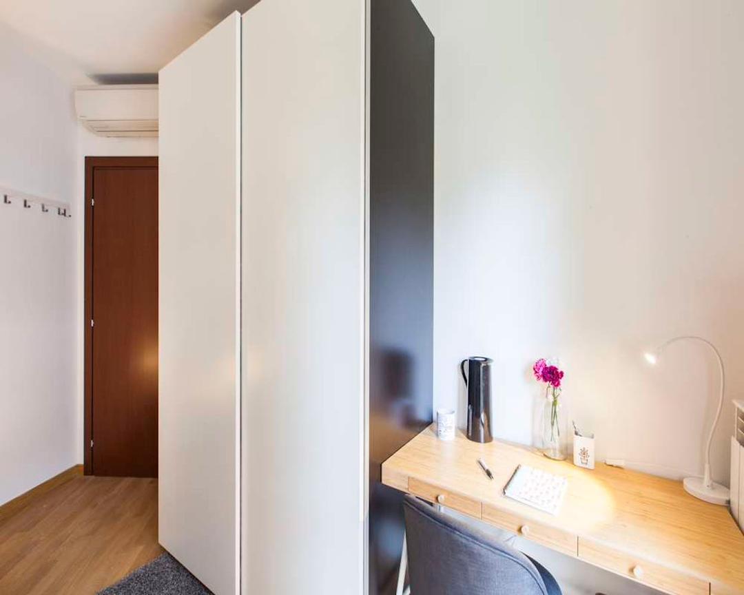 The room is furnished with a single bed 🛏️, a desk/workstation 💻, and a closet, making it ideal for focused study or work.