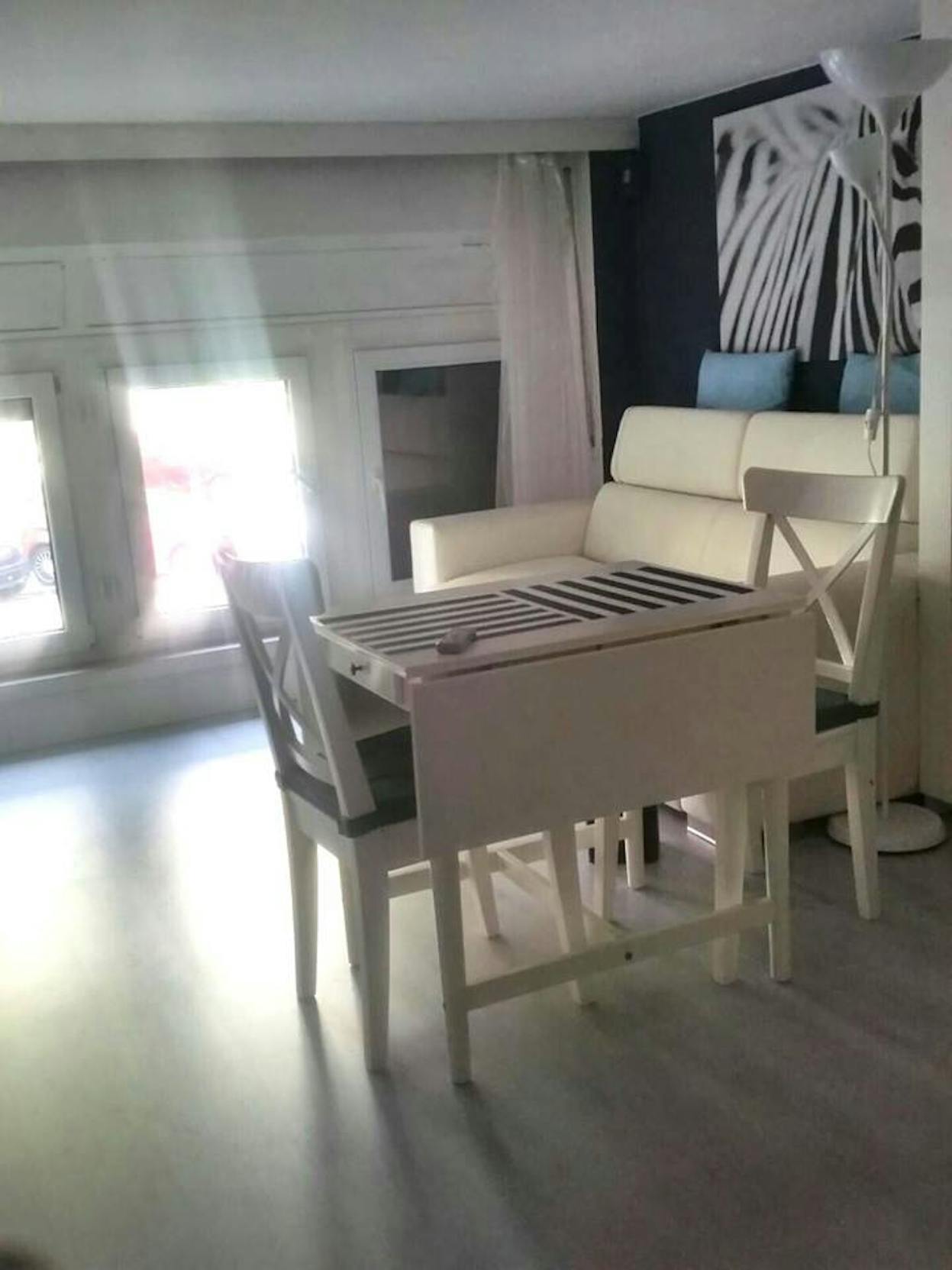 - A bright living room with sofa bed