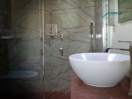 - Upper floor: three refined double bedrooms, each with its own ensuite bathroom (bathtub and shower).