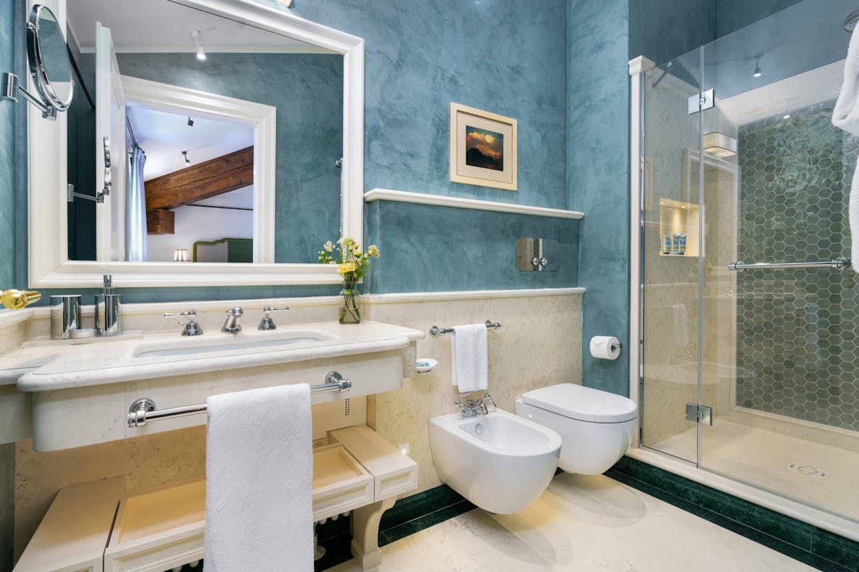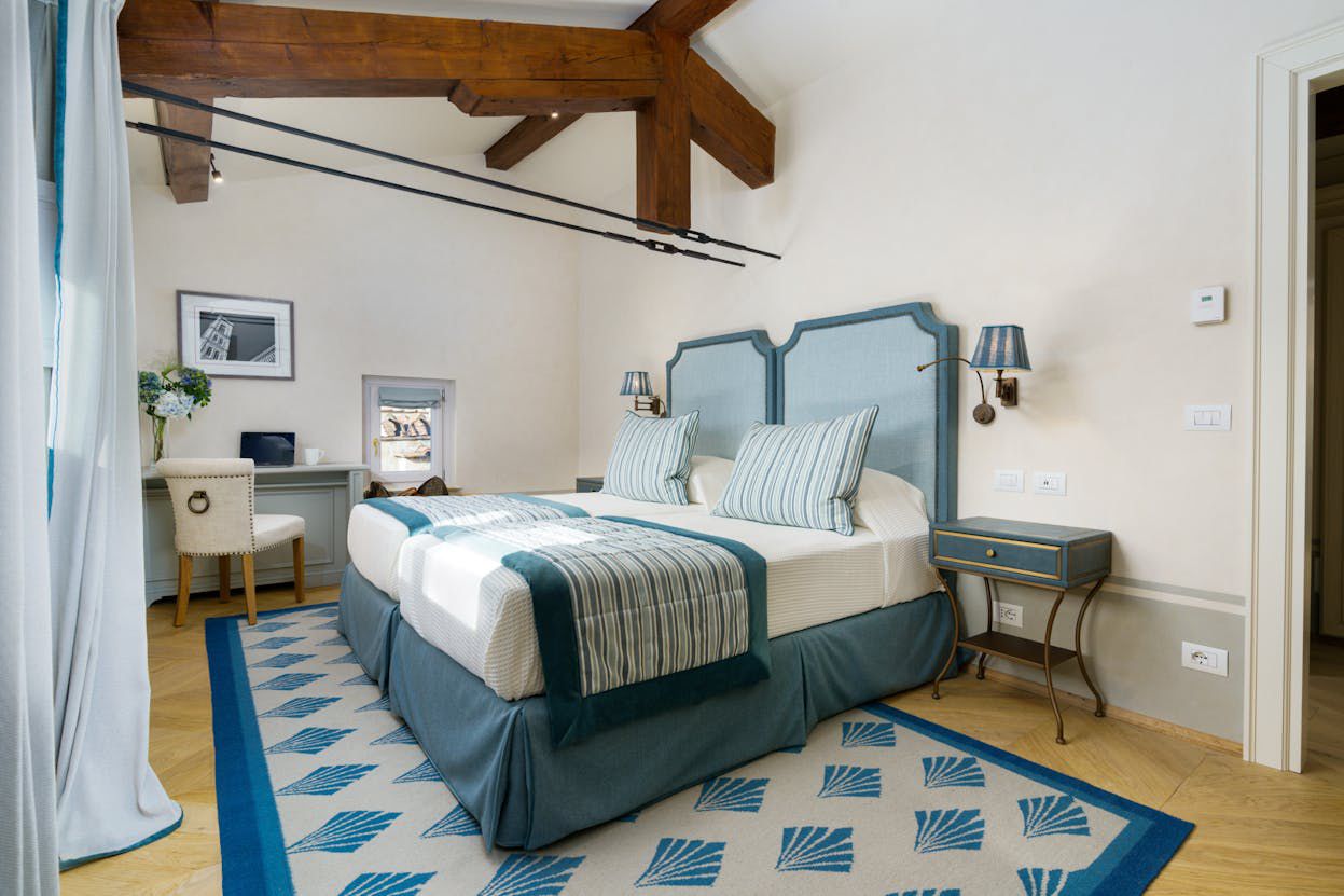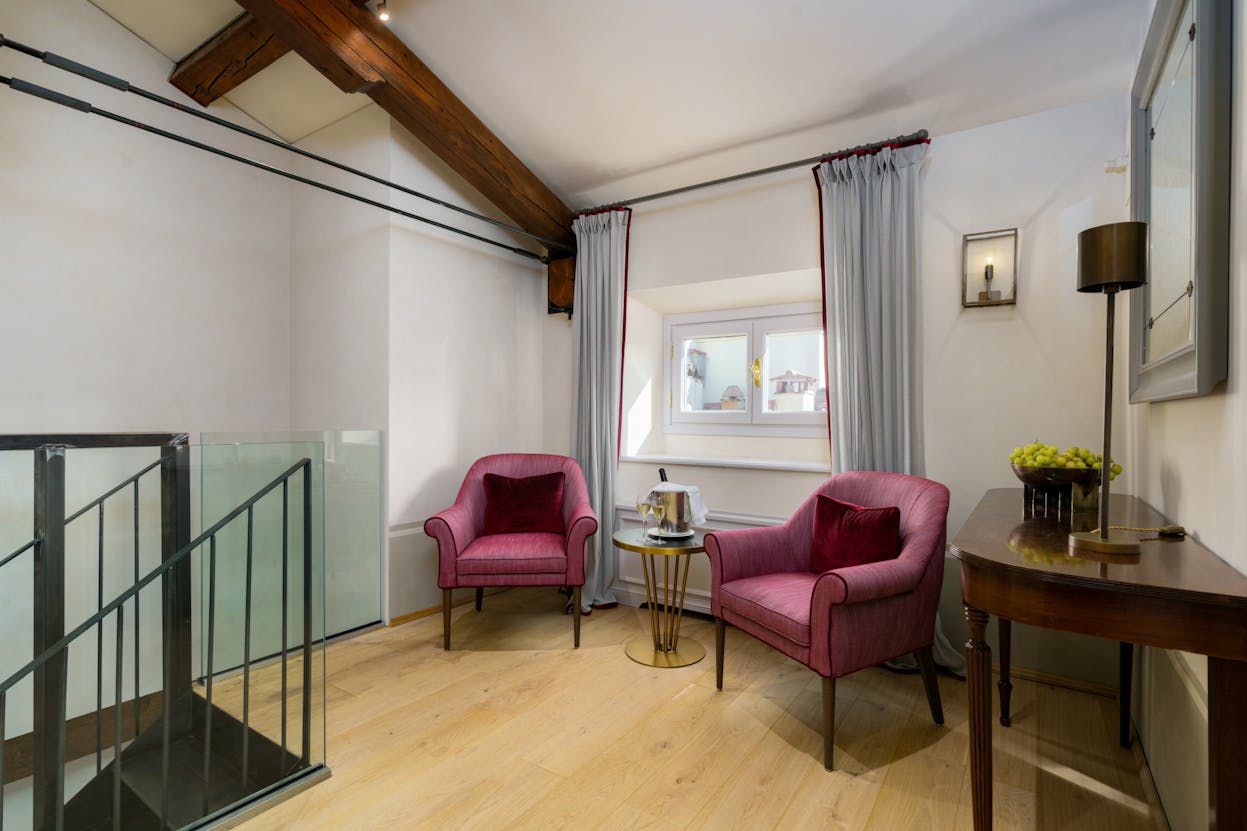 - 🌆 Dual-Aspect Suite – panoramic views of Villa Bardini, Palazzo Vecchio, and the Duomo, with walk-in closet & blue marble bathroom (rain shower).