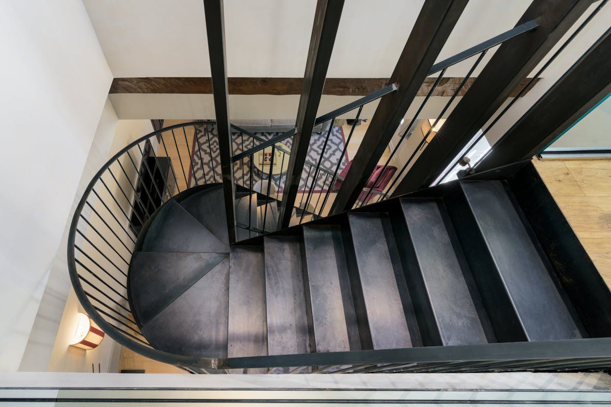 - ✨ A striking steel spiral staircase connecting the two levels